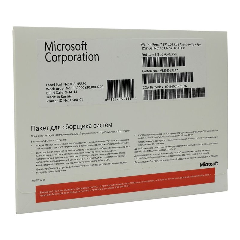ХАРАКТЕРИСТИКИ MICROSOFT WINDOWS 7 HOME PREMIUM SP1